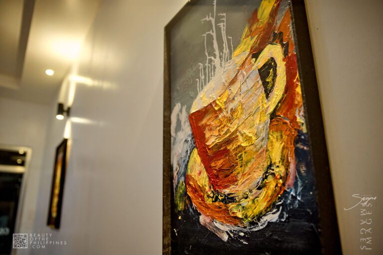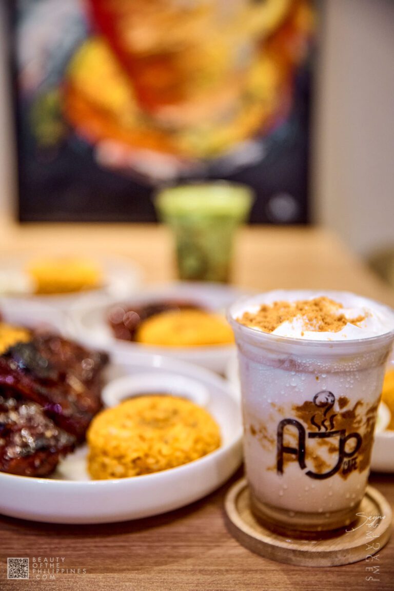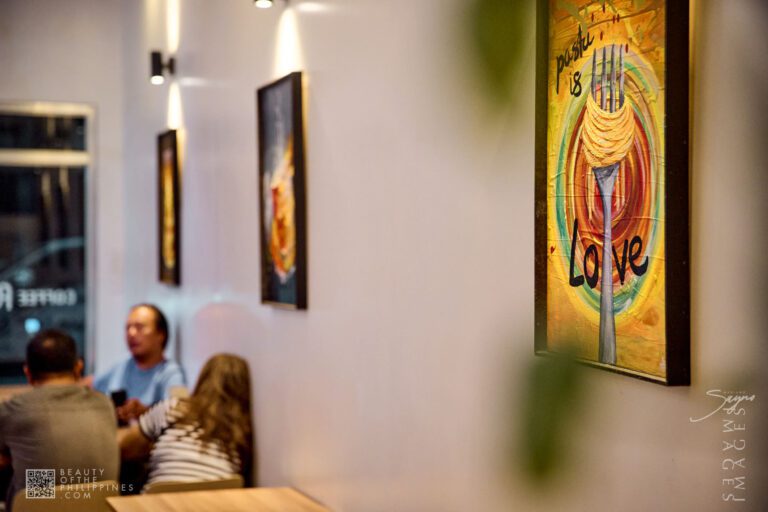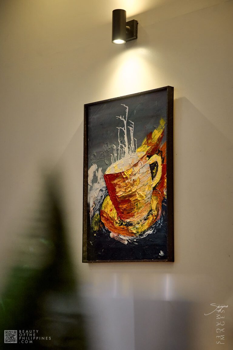 Finding A&J Cafe at J.P. Rizal Street corner E. Caparros Street in Barangay Pipisik, the space immediately communicates calm. Minimalist design, warm lighting, and an uncluttered interior make it feel spacious, while local artworks hang on the walls like a curated gallery, capturing everyday scenes and landscapes from Quezon Province. It’s a space that invites travelers, students, and locals alike to pause, sip, and observe.